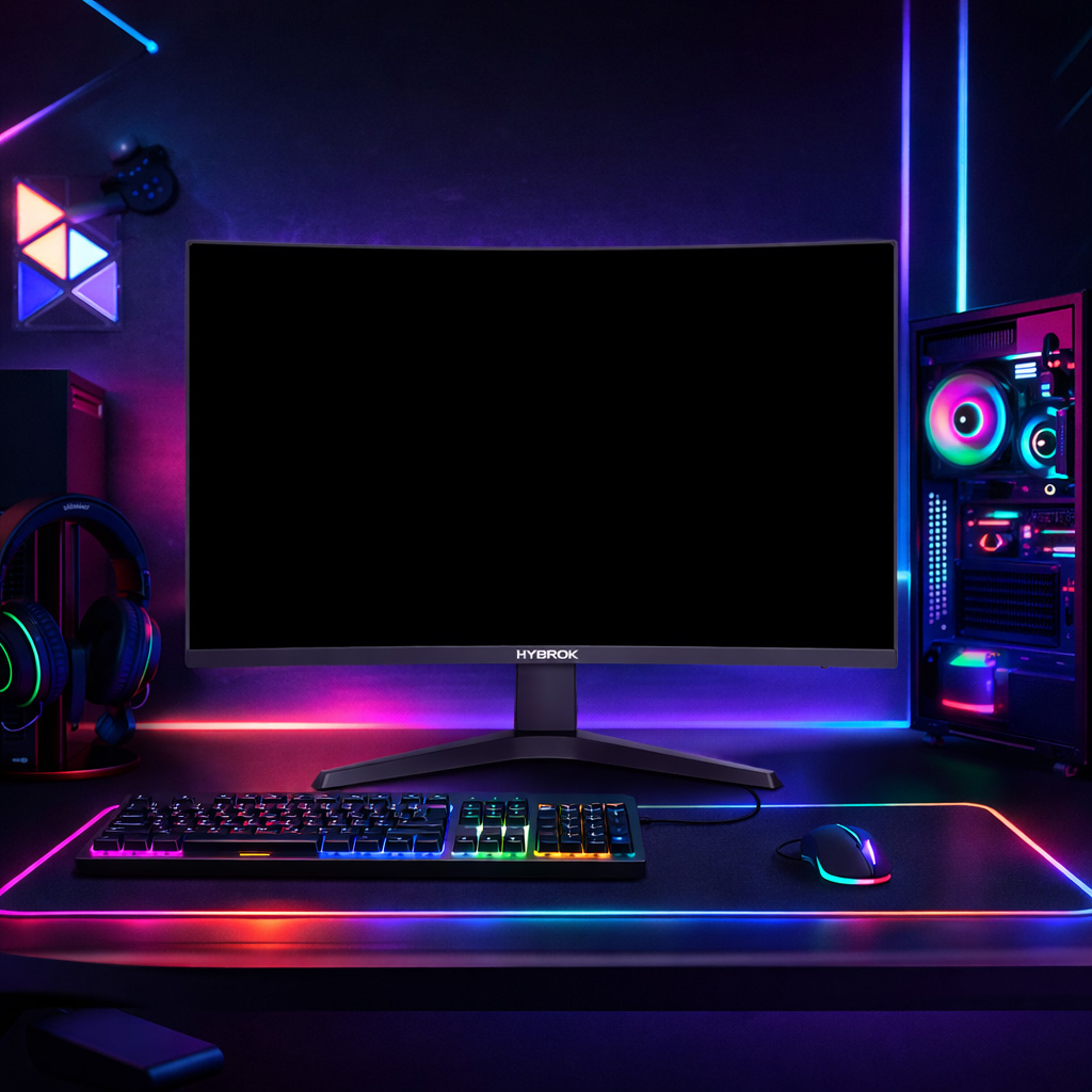 Plongez au cœur de l’action avec le HYBROK HG27CUQ300, un moniteur gaming 27 pouces incurvé taillé pour la compétition. Sa dalle VA haute performance délivre une résolution QHD (2560 x 1440) pour un niveau de détail époustouflant, tandis que sa fréquence de rafraîchissement de 300 Hz et son temps de réponse de 1 ms vous offrent un avantage décisif sur vos adversaires. Design élégant, ergonomie complète et éclairage RGB intégré : ce moniteur a tout pour devenir le centre de votre setup gaming.