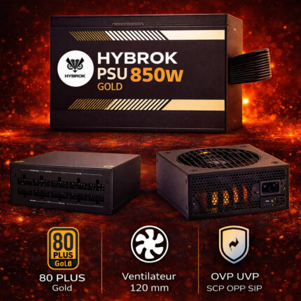 L’alimentation HYBROK PSU BRONZE 750W est conçue pour les configurations gaming et professionnelles recherchant stabilité, efficacité énergétique et sécurité avancée. Certifiée 80 PLUS Bronze (EU Bronze), elle garantit un rendement optimisé jusqu’à 88%, réduisant la consommation d’énergie et la chaleur.